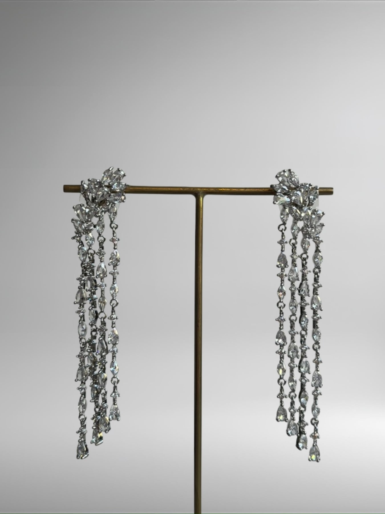 Introducing our Nini earrings. The perfect statement piece. Designed with a cluster of sparkling stones that flow elegantly at the ear. Truly elevates any look and perfect for this season with adding a touch of glamour.