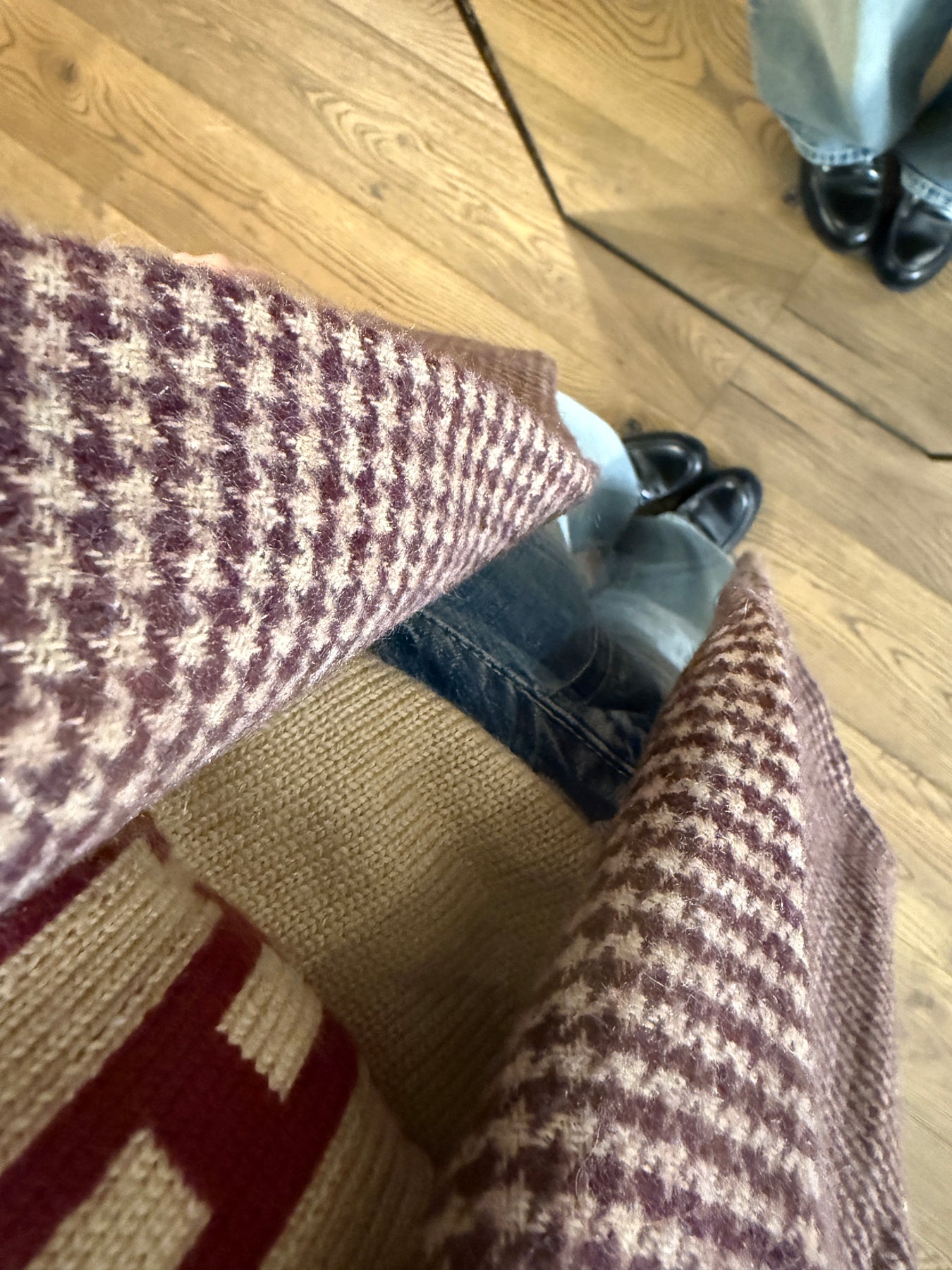 Step into autumn with the Classor jacket. The perfect blend of structure and seasonal warmth. The rich burgundy houndstooth paired with warm tones give it a beautiful autumnal feel. Its oversized silhouette delivers that relaxed yet elevated look, while tailored details keep it sharp like the precise shoulder shaping and a button closure that feels polished without being stiff. Designed with side pockets, you get both style and function. This is the kind of piece that brings texture, colour and confidence to your wardrobe for the season ahead.