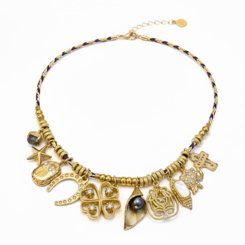 The Bellagio Necklace is here - a bold and vibrant standout piece. Features a beautifully braided raffia in a playful mix of colours. Enhanced with a mix of charms giving you, protection, happiness & joy. Truly a standout piece which will turn heads wherever you go.