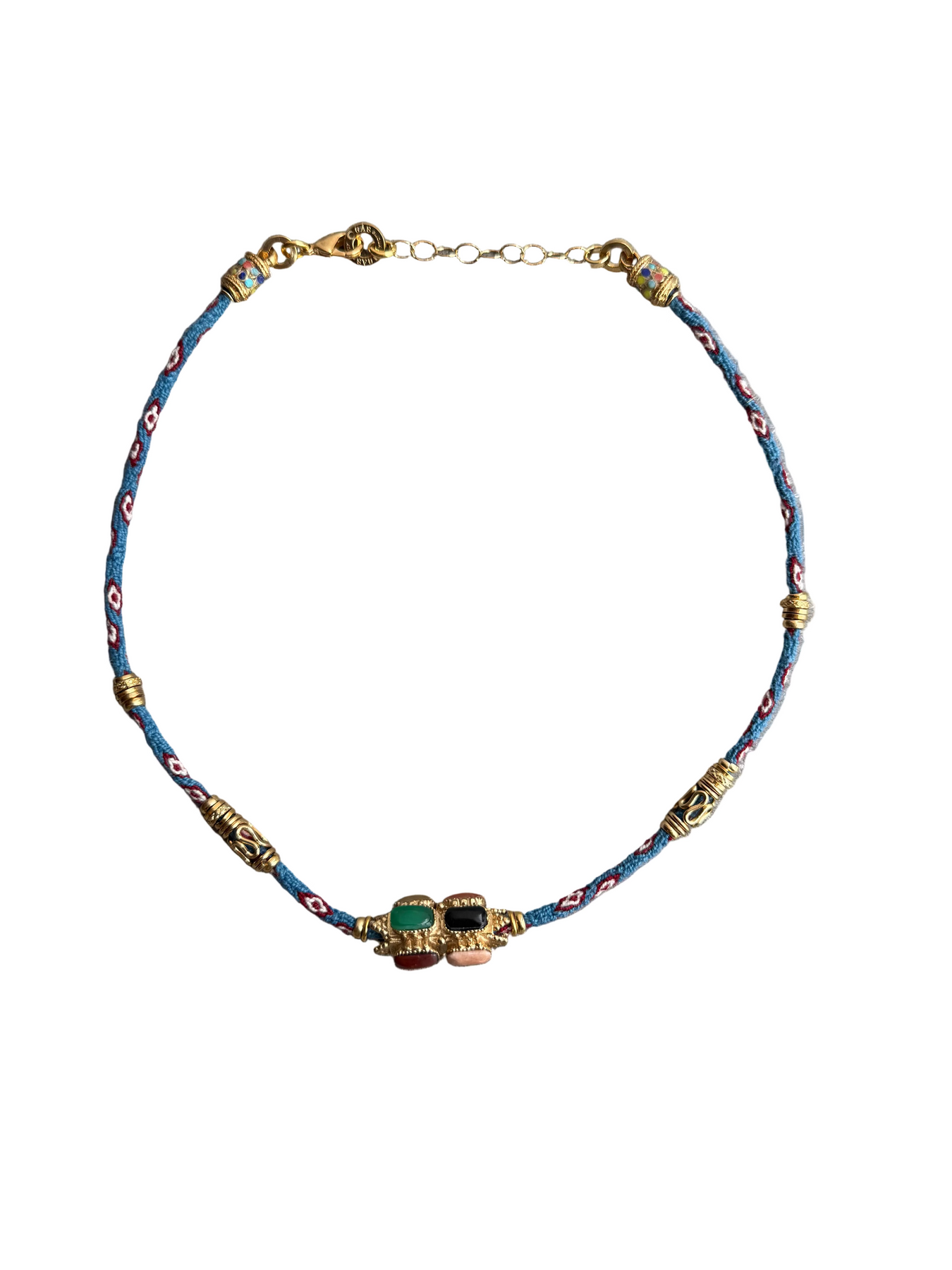 The Limou bracelet/necklace transports us all the way to the savoir-faire textile craftsmanship of the Peruvian Andes. Exceptional pieces with a traveling soul and handcrafted with care. Made of hand-woven alpaca threads adorned with gold-plated barrel ornament with gemstones. A versatile piece can be worn as a wrap bracelet or as a necklace.