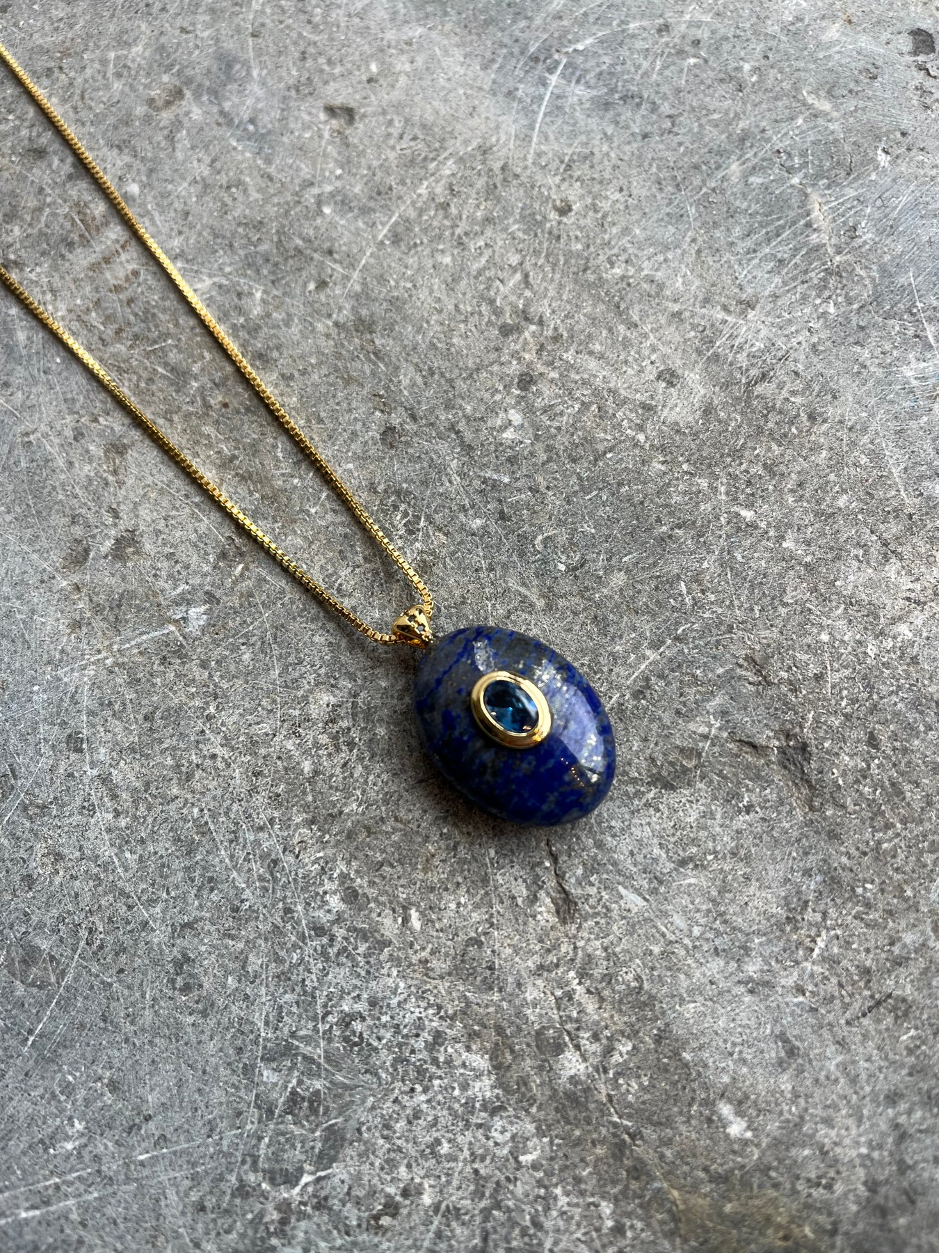 Say hello to the Ovale necklace, a truly unique piece of wearable art. Each pendant is lovingly made using natural semi‑precious stones, meaning one of a kind. An oval shape stone with a gold framed eye accent with an eye catching stone adding a sleek touch. Perfect for your jewellery collection.