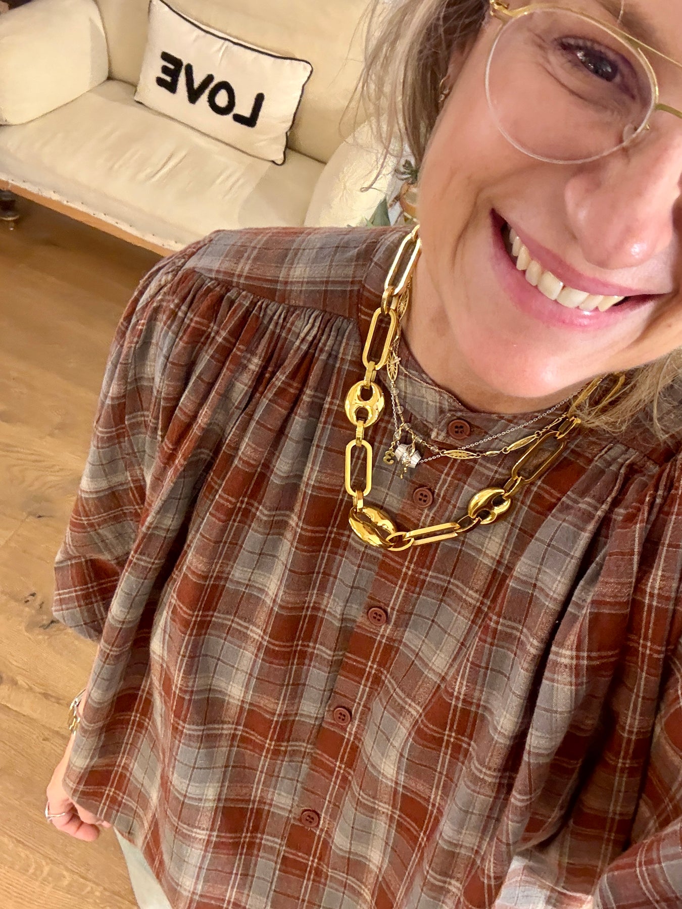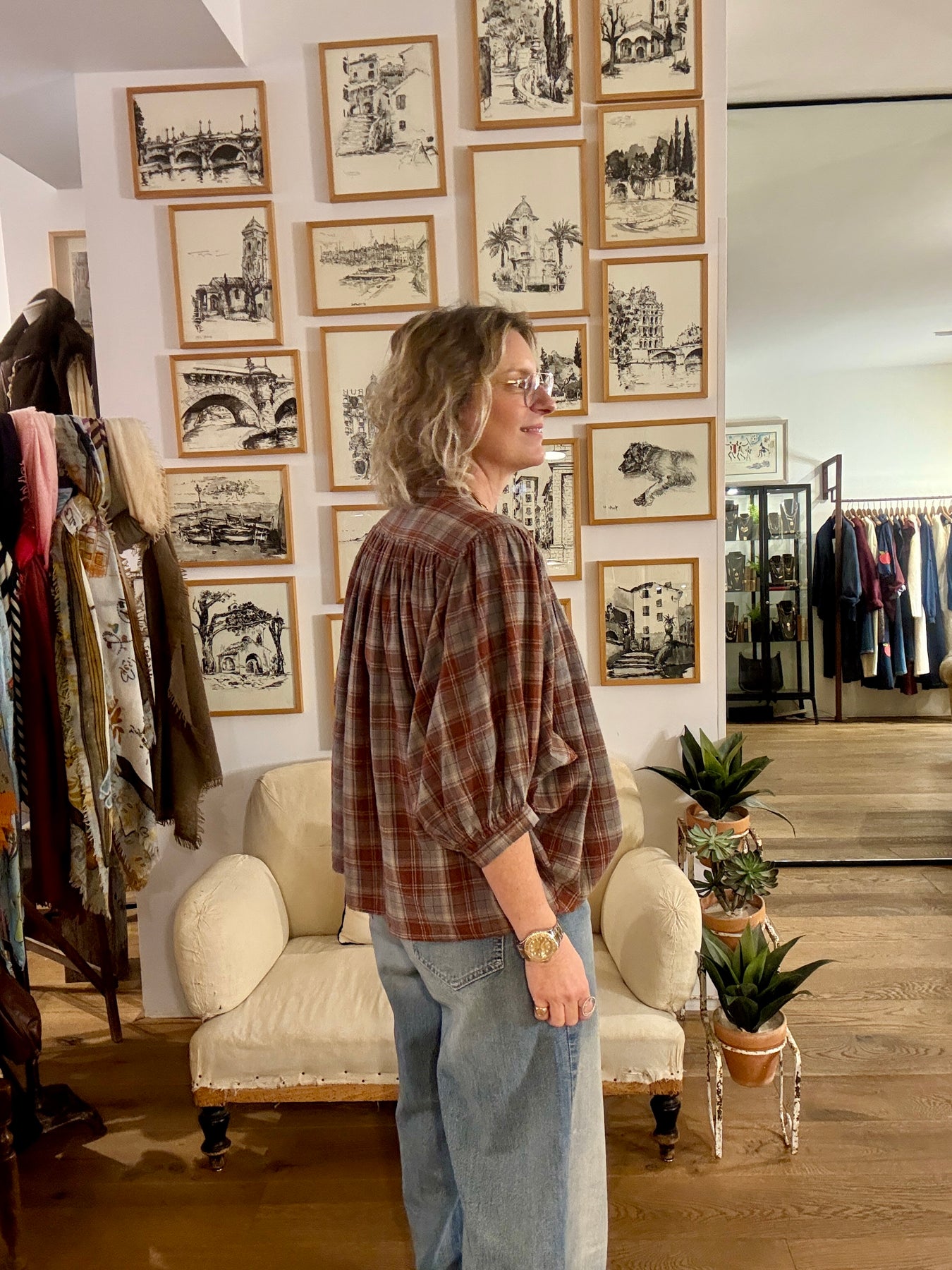 Effortlessly chic and endlessly versatile, the Batti blouse returns this season in an ultra-soft flannel check fabric, cozy, on-trend and perfectly stylish. Crafted for comfort, it features the signature batwing sleeves that add a playful yet refined twist.