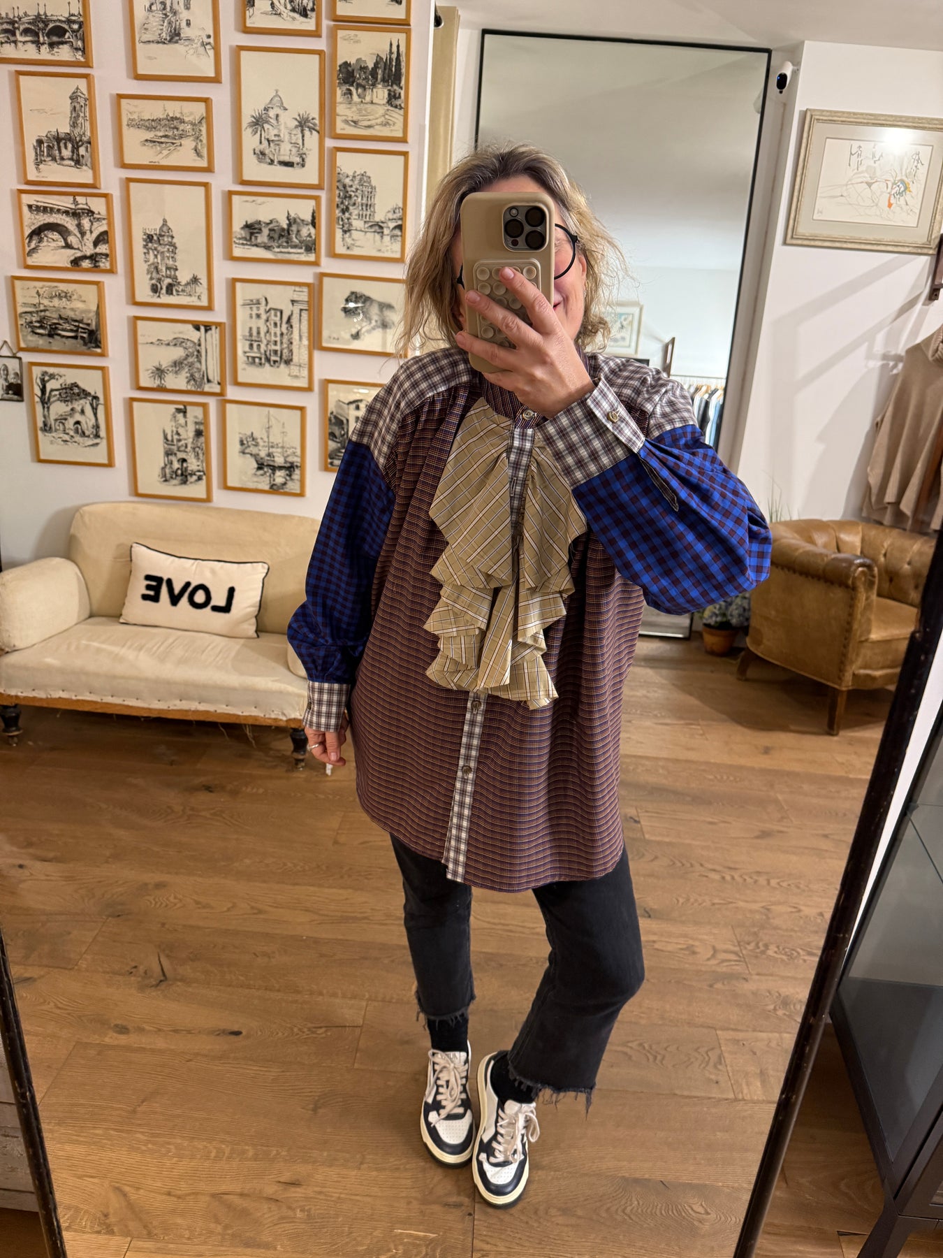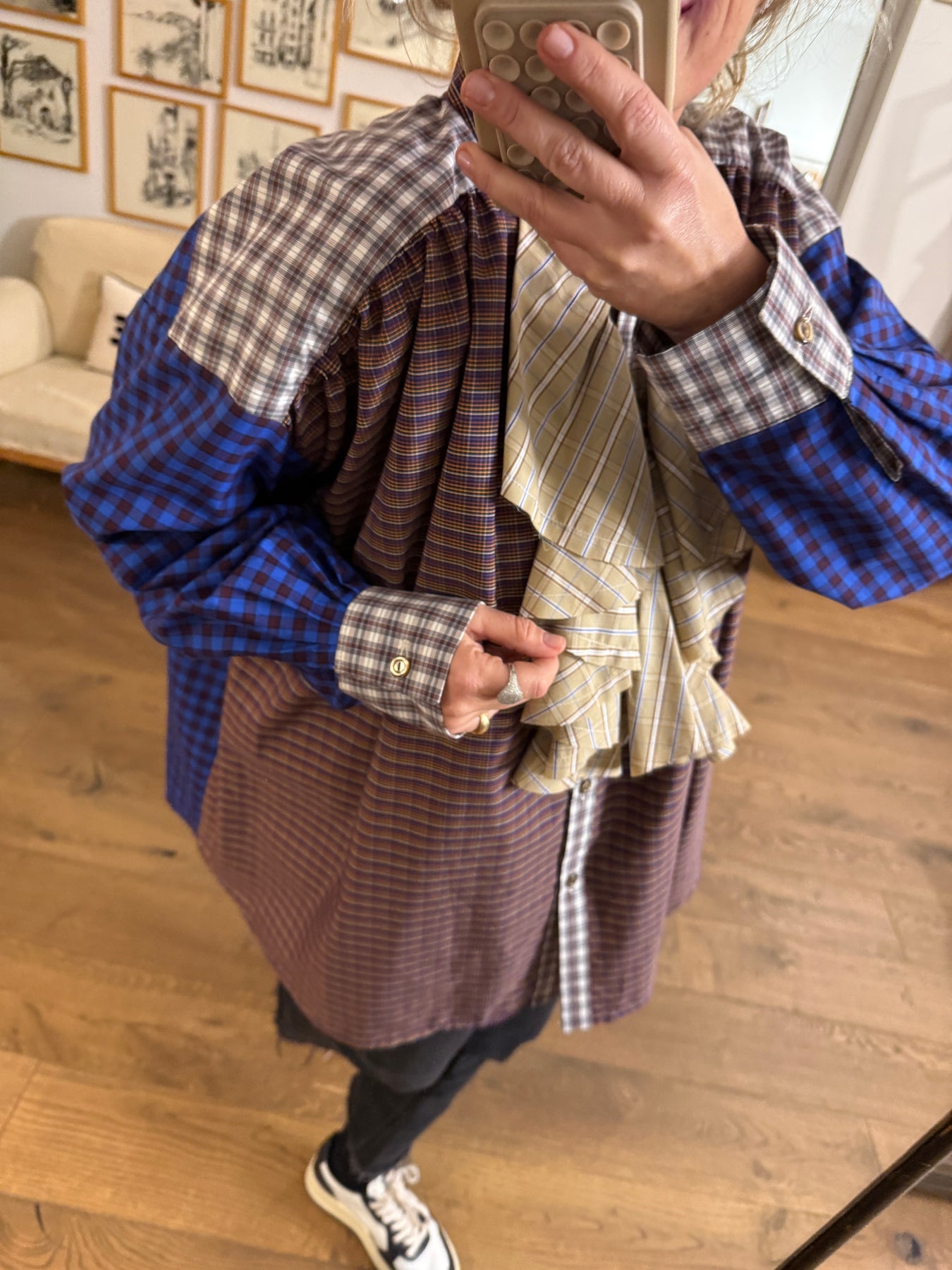 Make a statement with our Fama shirts. One of kind, handmade in our Marrakech workshop with patchwork poplin fabric. Every piece tells its own story through the interplay of colour and pattens. Crafted with a beautiful ruffled bodice with a relaxed, oversized fit. Truly one of our favourite shirts.