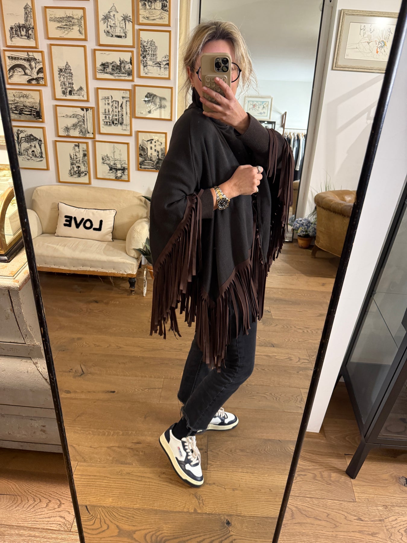 Wrap yourself in our Lewana poncho. Crafted in a soft, flowing knit that drapes beautifully over your frame. Featuring delicate fringe detailing along the hem that adds graceful movement and a touch of bohemian charm. This poncho delivers both style and comfort. The fringe adds playful elegance without overwhelming the design, making it a versatile addition to your year-round wardrobe.