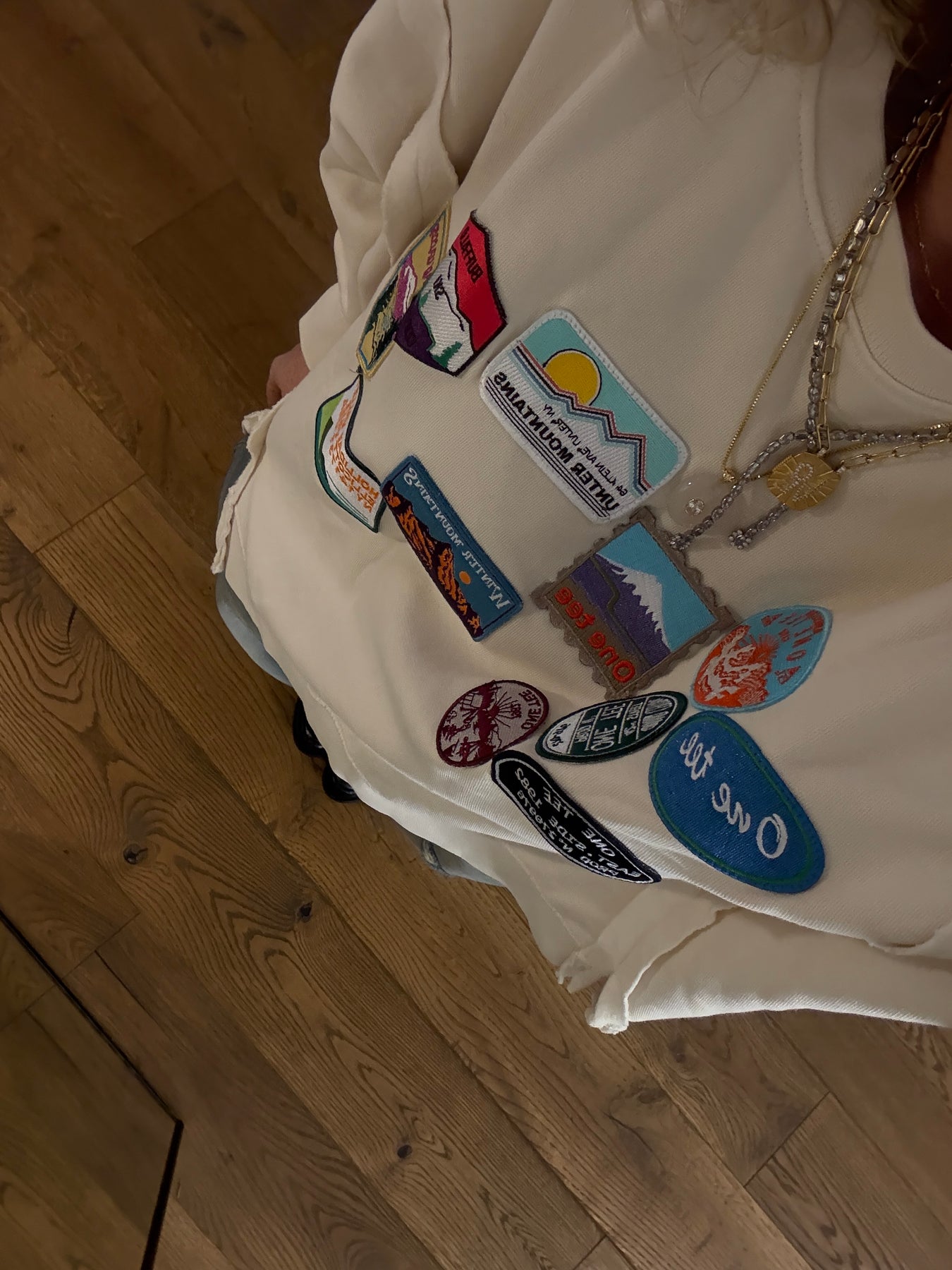 The Olympe sweater is one of our favourite additions. Relaxed, effortless and full of character, this sweatshirt will be your go to piece. Cut in a comfortable oversized fit that drapes softly over the shoulders, it delivers both warmth and ease. With stand‑out details include several embroidered patches across the chest and back and a “OT” lettering down the sleeves for even more personality. Designed with a drawing inspiration from New York street culture, its design truly merges a casual and cool look.