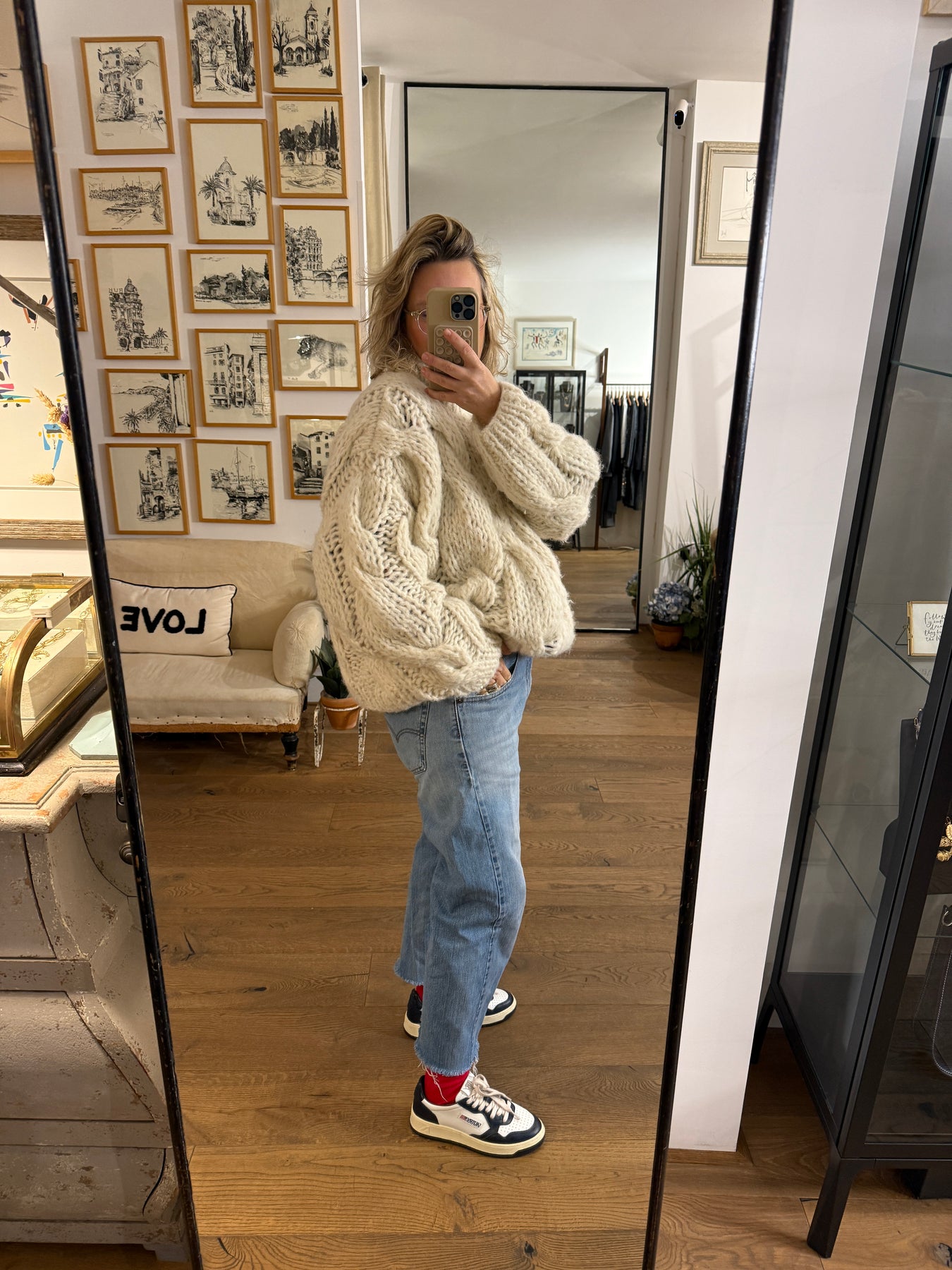 Discover the Peru jumper. The ultimate in cosy sophistication with this chunky cable knit. Handmade from the finest alpaca fibres sourced deep in the South Andes of Peru. Its high neck adds a touch of timeless elegance, while the luxurious alpaca yarn offers unparalleled softness, silkiness and warmth, a heritage quality cherished since Inca times.