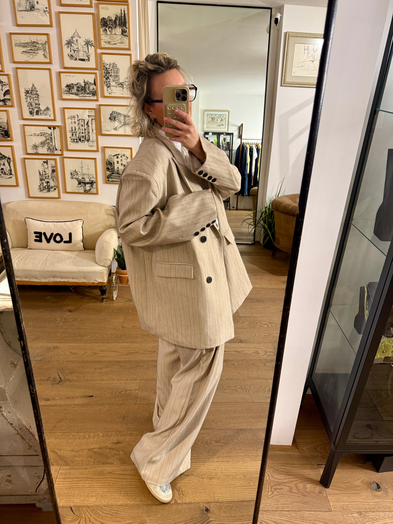 The Russo blazer is an oversized jacket with incredible chic appeal. Designed with a double-breasted front and refined fine pinstripes, it embodies timeless tailoring with a modern edge. It looks absolutely stunning paired with the matching trousers for a perfectly polished and sophisticated silhouette.