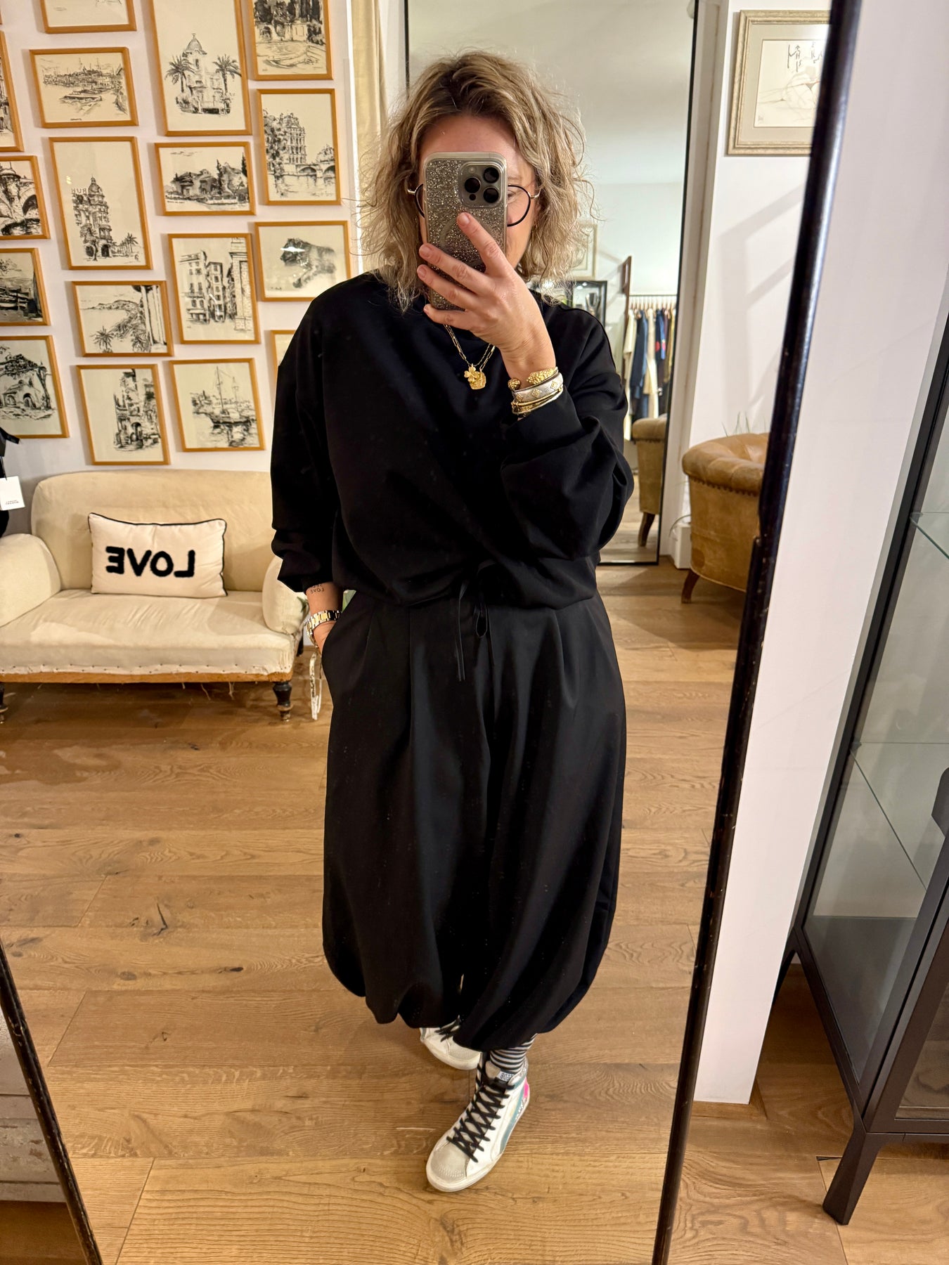 The perfect mix of cozy and cool, the Snazzy top is a lightweight sweatshirt with a stylish twist. Designed in a soft, warm fabric, it features a cropped, balloon-style silhouette that's cinched at the waist to create that signature bubble shape.