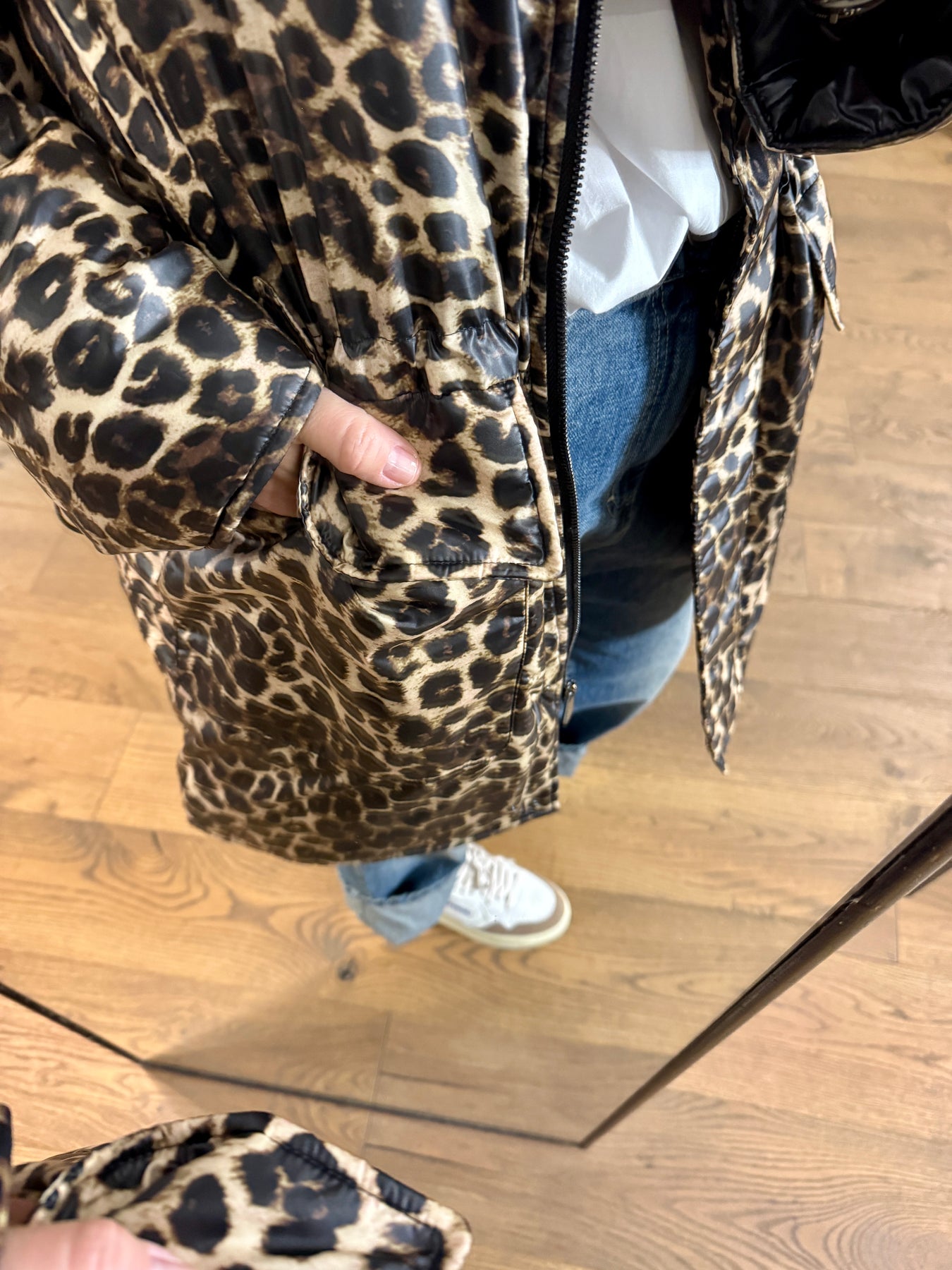 The Voleo jacket merges modern edge with everyday functionality. Featuring a bold wild leopard print and crafted from waterproof fabric, it’s designed to face the elements without sacrificing style. The oversized fit offers effortless comfort, while the high stand-up collar provides added protection. You can cinch the waist for a more feminine, structured silhouette adding shape without compromising on ease. Light and soft to the touch, this jacket combines practical comfort with bold personality.