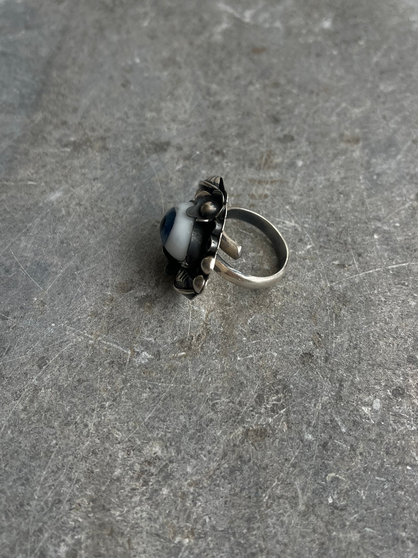 Introducing the Idris eye ring. Bold and symbolic, this statement ring is centred on a stylised eye motif encircled by delicate floral and leaf detailing, with an infinity accent adding depth and meaning. Crafted with attention to detail, its sculpted textures and graceful lines make it a powerful and elegant piece designed to capture the eye and express individuality.