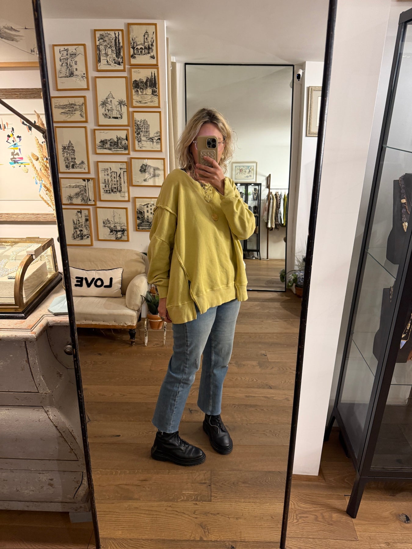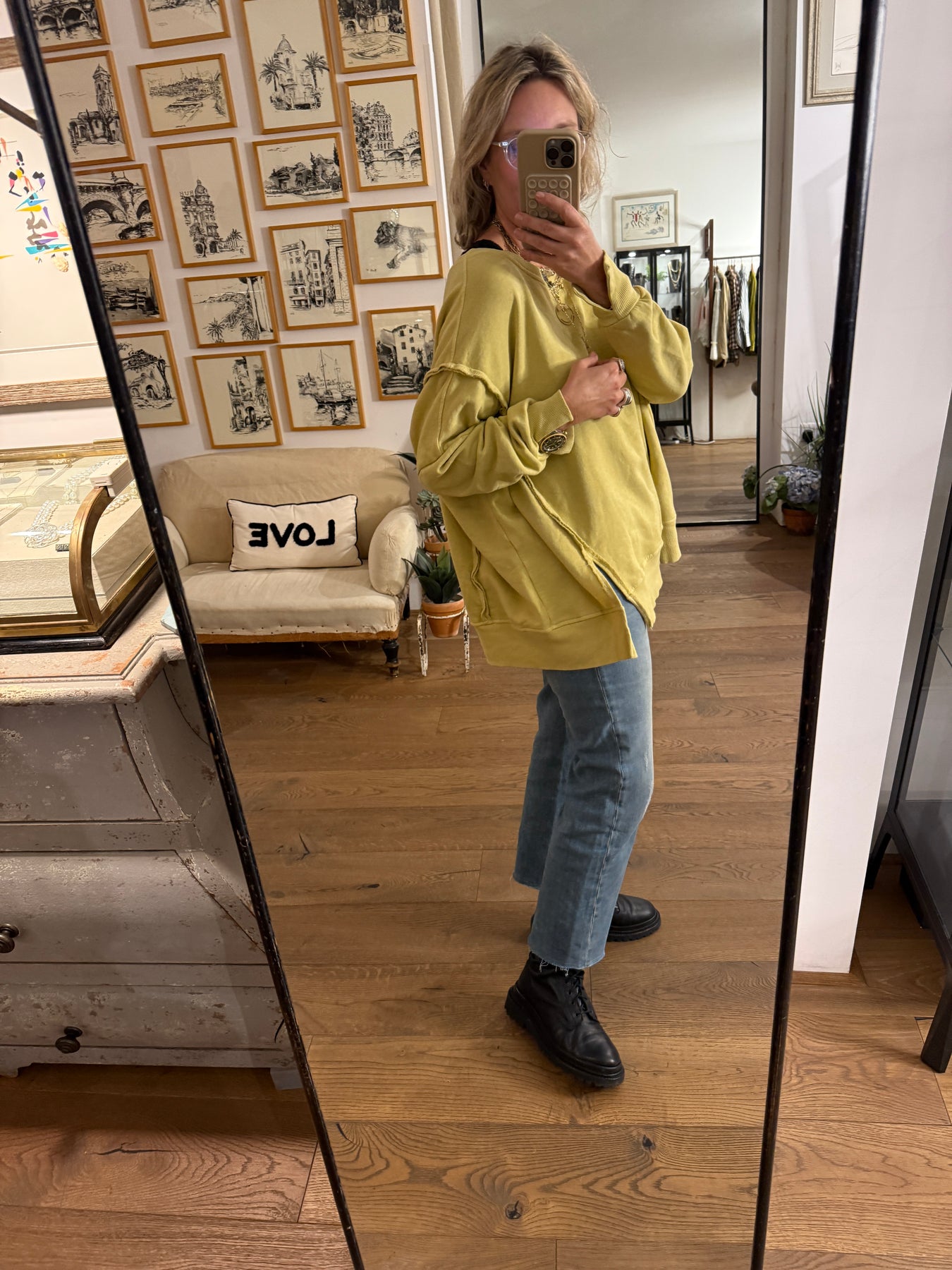 Meet the Gilbert sweater. Designed to be your go-to sweater season after season. This pullover delivers an easy, relaxed aesthetic without sacrificing style. Cut in an oversized, slouchy fit, it drapes beautifully. What truly sets the Gilbert apart are the raw, exposed seams that give it a lived-in, authentic character. Whether you’re pairing it with jeans for a casual day out or layering it over leggings for cosy weekend vibes, this sweater makes every outfit effortlessly chic.
