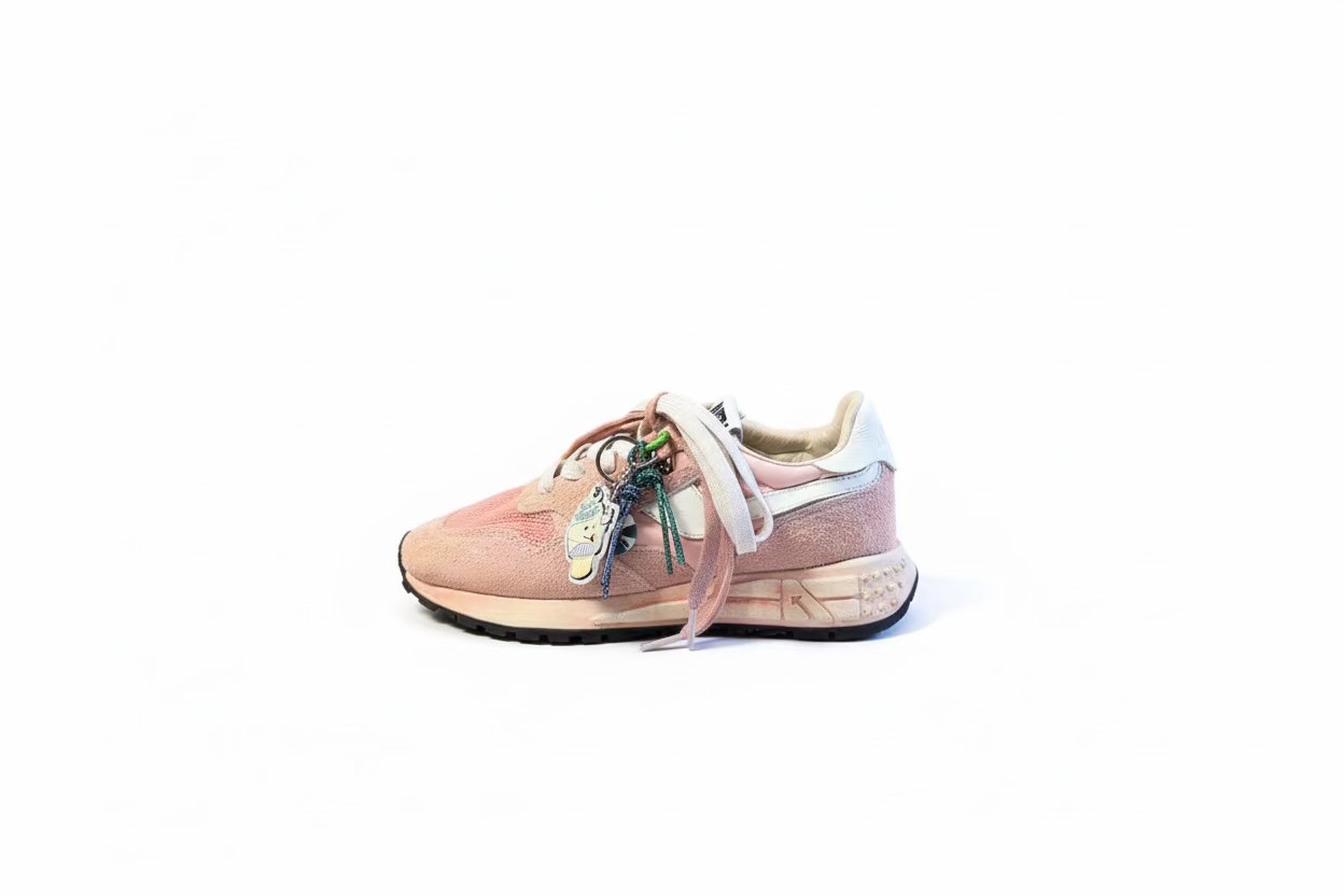 Introducing the Super Vintage Reelwind. A lightweight, flexible and inspired by the running world. Featuring artisanal finishes that give each pair a unique, vintage worn look. Designed with detachable key rings on one shoe and double contrasting laces. The rubber sole features an embossed star pattern and A-arrow logo and Made in Italy delivering standout style and comfort.