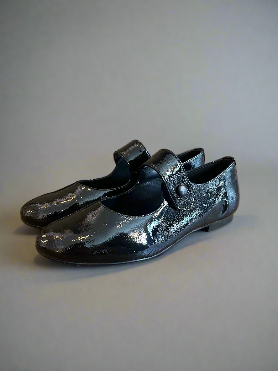 Introducing our new Mary Janes. The perfect pair of flats that delivers effortless comfort in a sleek, modern silhouette. A flat sole, gently rounded toe and a wide button-fastening strap lined with an internal elastic band that adapts to your foot. Truly a classic for your shoe collection that can be paired with a formal or casual outfit.