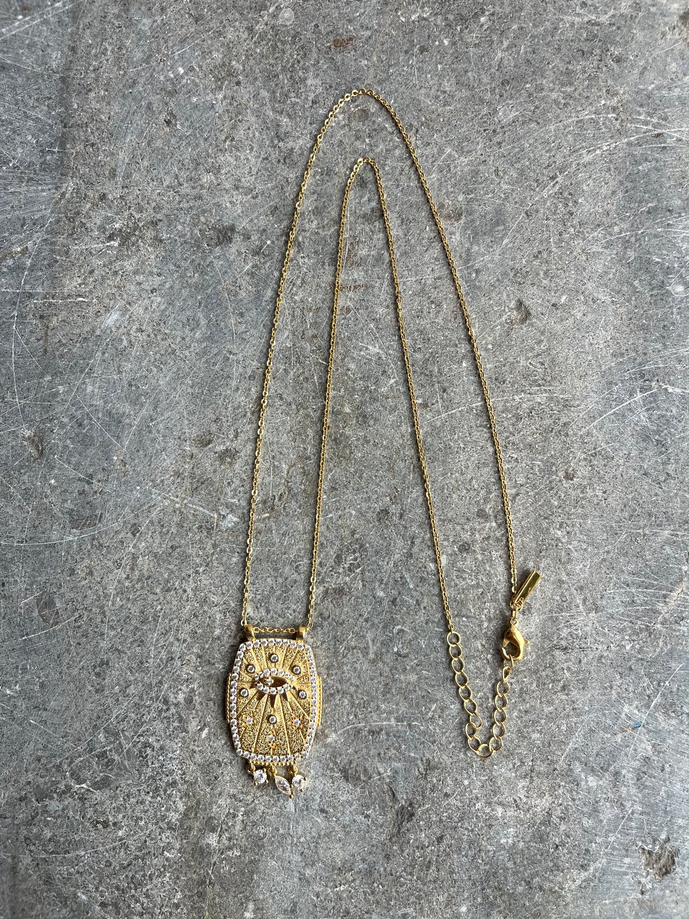 Say hello to the Boon necklace. A stunning piece thats crafted with a hammered texture that gives just enough texture without overwhelming the design, while three stones quietly dangle beneath a polished outline, catching light with every turn. Suitable for both daywear and evening statements, it’s a piece that balances boldness with simplicity.